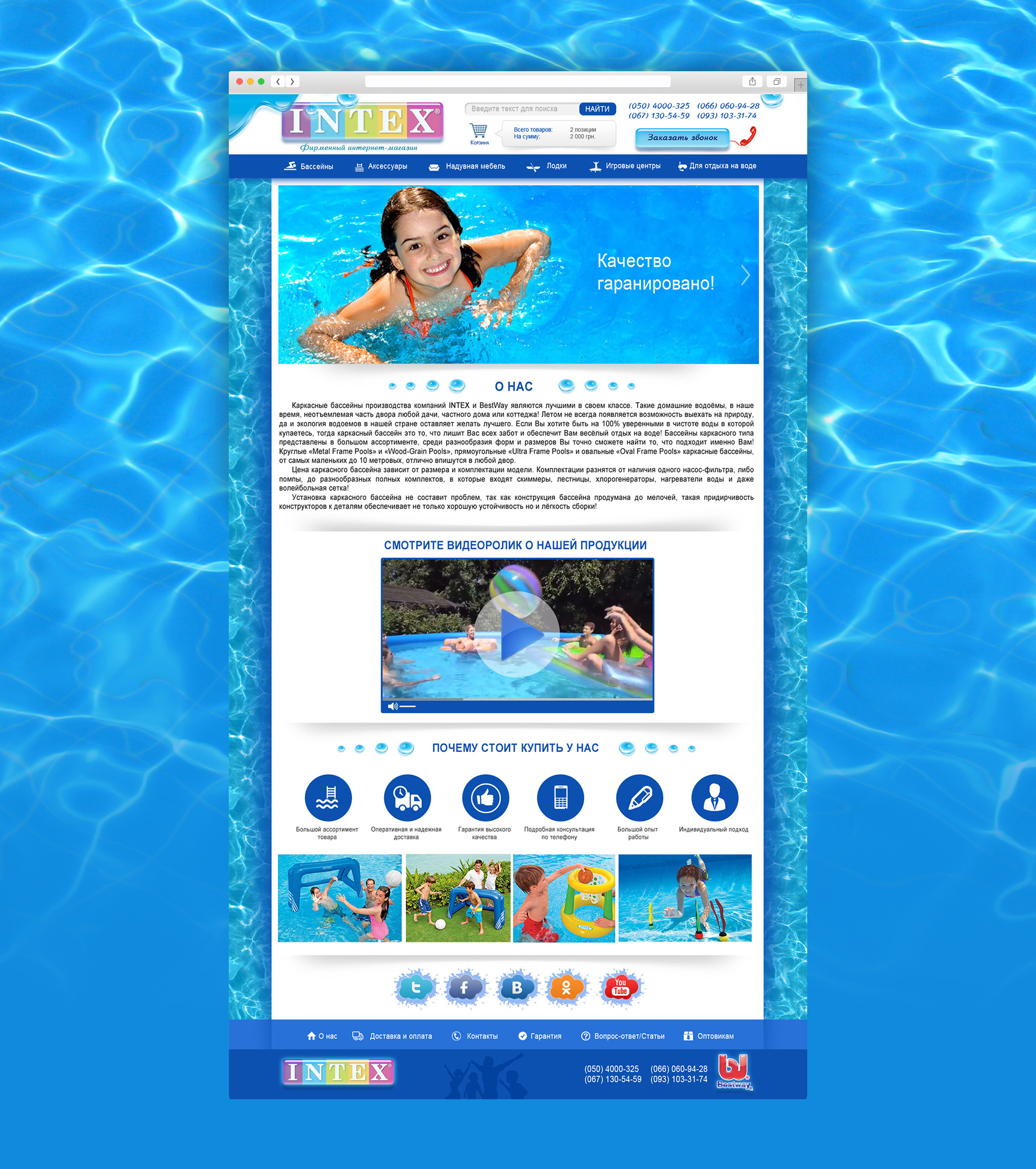 Головною метою при розробці дизайну було зацікавити користувачів продукцією. Тому було прийнято рішення розмістити на головній сторінці відео, а також описати переваги даного інтернет-магазину.