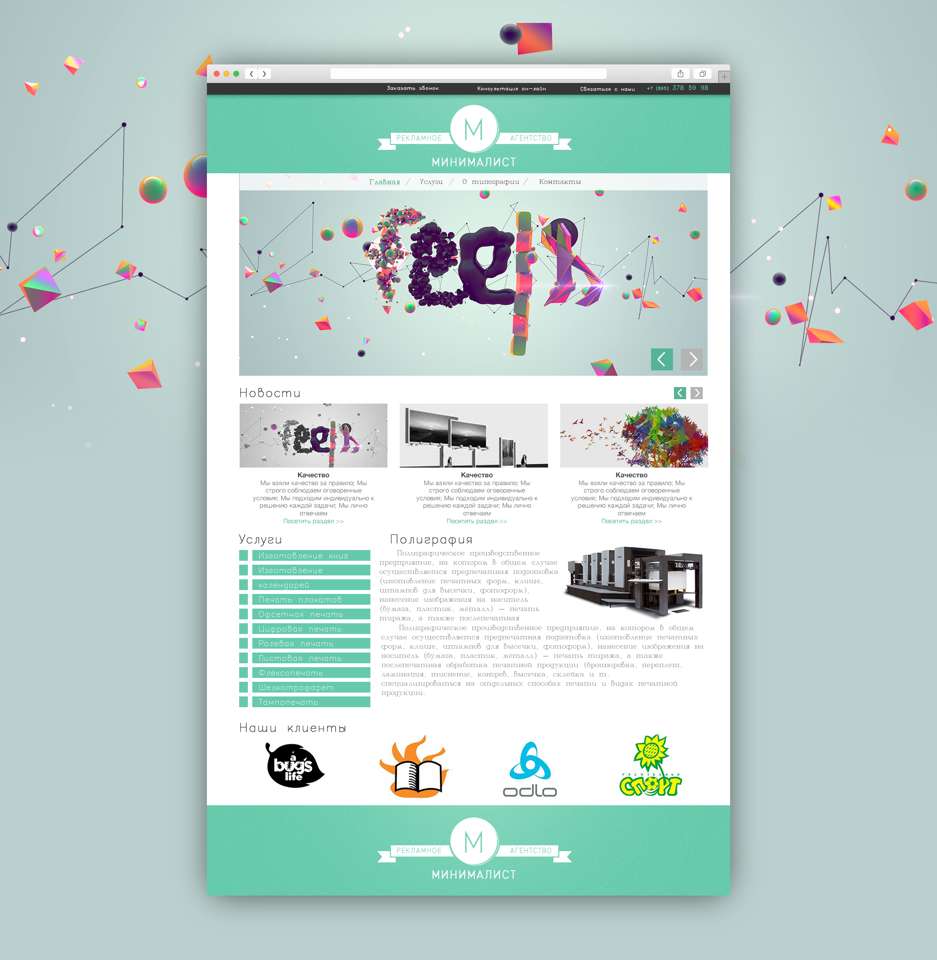 Для зацікавленості користувачів, ми вирішили поставити висновок «свіжих» новин сайту, а так само вказати популярних клієнтів, які користуються послугами рекламного агентства «Мінімаліст».